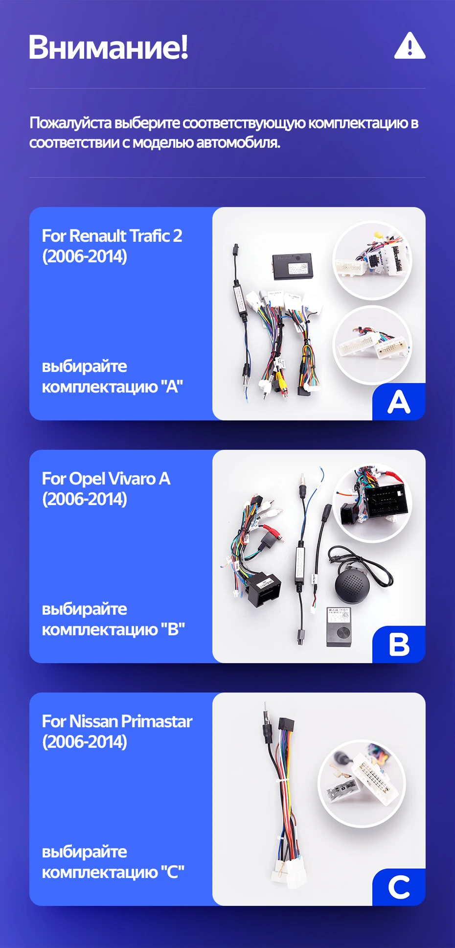 Готовый установочный комплект для магнитолы Renault Trafic 2 (2006-2014) Тип-A 10 дюймов в штатное место, включает переходную рамку и проводку.