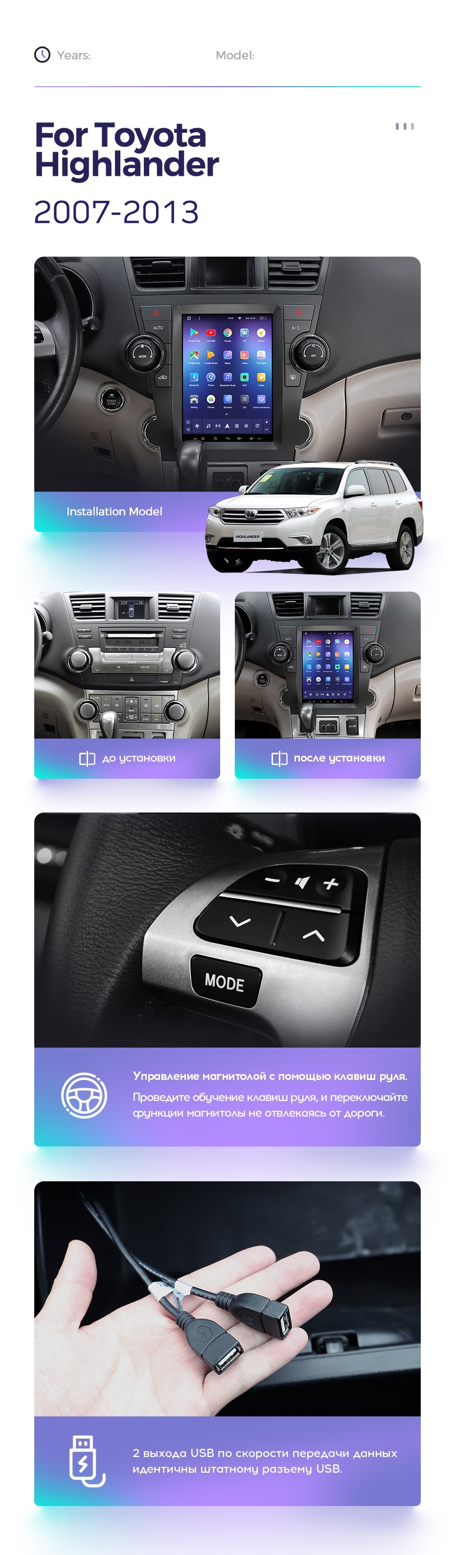 Штатная магнитола Tesla style Teyes TPRO 2 4/64 Toyota Highlander 2 XU40 (2007-2013) - купить всего за 39 000 руб. в интернет-магазине в Иркутске Teyes.com.ru. ✓ Самый лучший выбор мультимедиа ✓ Лучшая замена штатному ГУ ✓ Тел. +7 (800) 775-31-74