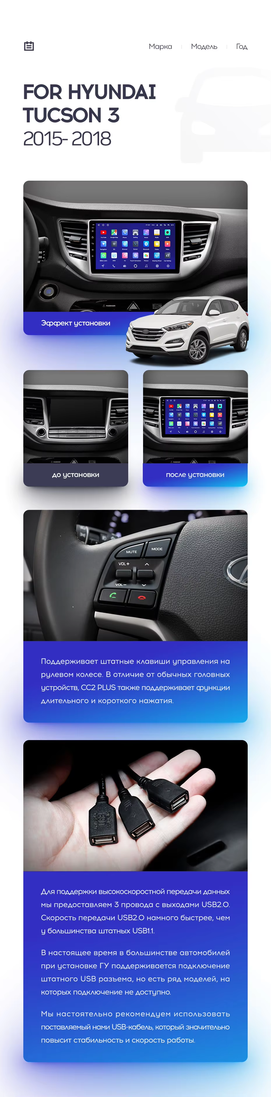 Штатная магнитола Teyes CC2 Plus 4/32 Hyundai Tucson 3 (2015-2018) Тип-A - купить всего за 33 800 руб. в интернет-магазине в Иркутске Teyes.com.ru. ✓ Самый лучший выбор мультимедиа ✓ Лучшая замена штатному ГУ ✓ Тел. +7 (800) 775-31-74