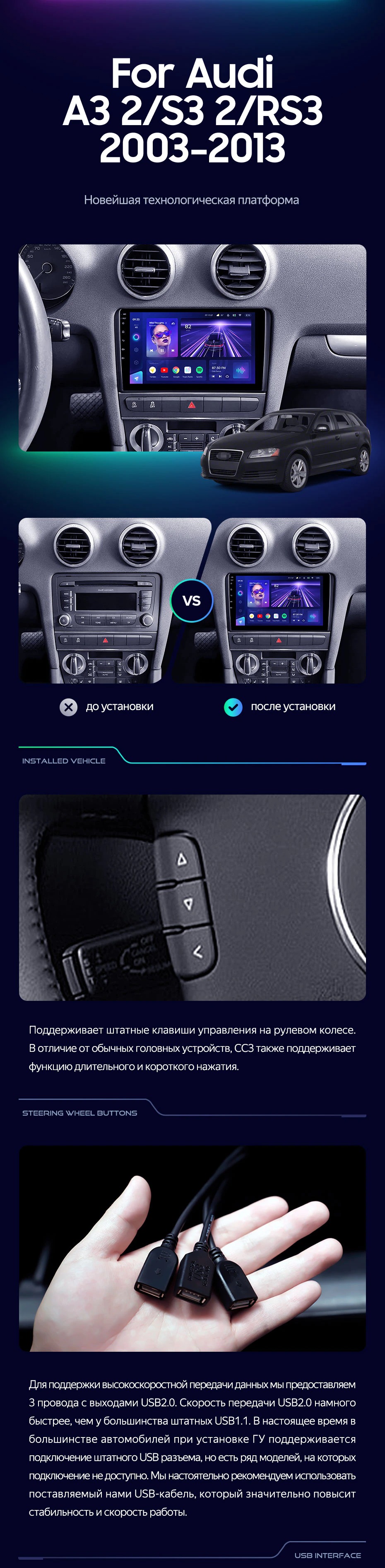 Штатная магнитола Teyes CC3 2K 360 6/128 Audi S3 2 (2006-2012) (13") - купить всего за 51 500 руб. в интернет-магазине в Иркутске Teyes.com.ru. ✓ Самый лучший выбор мультимедиа ✓ Лучшая замена штатному ГУ ✓ Тел. +7 (800) 775-31-74