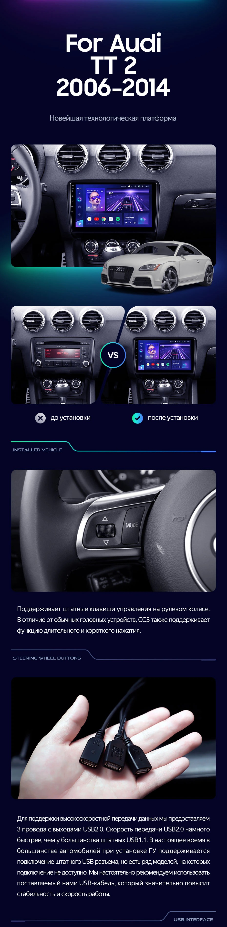 Штатная магнитола Teyes CC3 2K 360 6/128 Audi TT 2 (2006-2014) (13") - купить всего за 52 200 руб. в интернет-магазине в Иркутске Teyes.com.ru. ✓ Самый лучший выбор мультимедиа ✓ Лучшая замена штатному ГУ ✓ Тел. +7 (800) 775-31-74