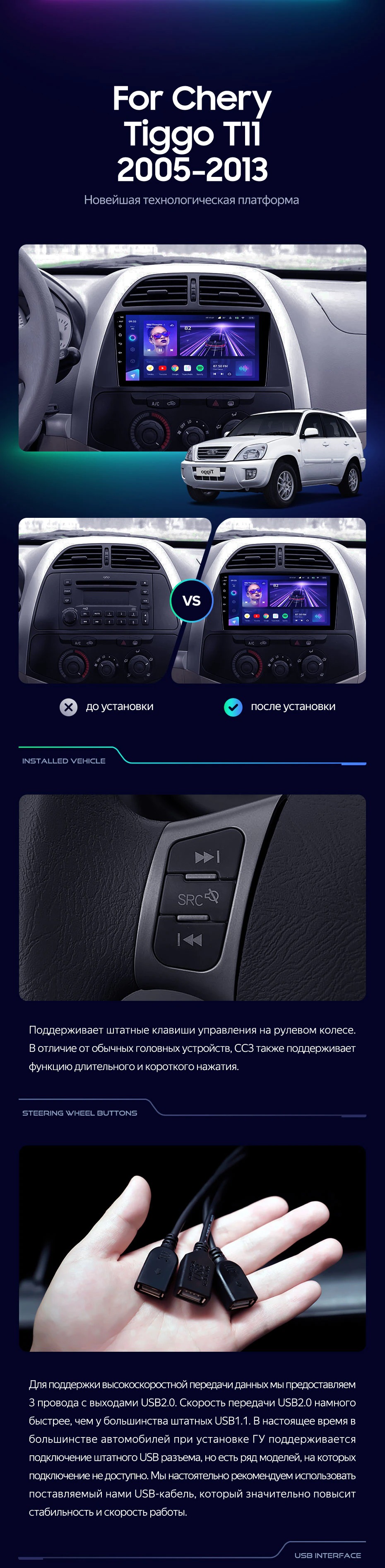 Штатная магнитола Teyes CC3 2K 360 6/128 Chery Tiggo T11 1 (2005-2013) - купить всего за 54 550 руб. в интернет-магазине в Иркутске Teyes.com.ru. ✓ Самый лучший выбор мультимедиа ✓ Лучшая замена штатному ГУ ✓ Тел. +7 (800) 775-31-74