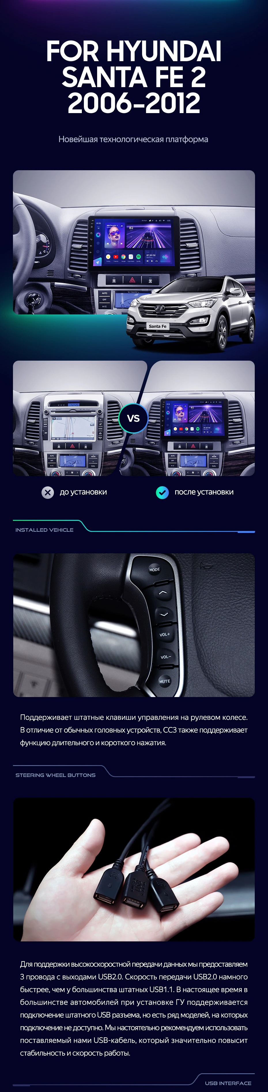 Штатная магнитола Teyes CC3 2K 360 6/128 Hyundai Santa Fe 2 (2006-2012) (13") - купить всего за 50 960 руб. в интернет-магазине в Иркутске Teyes.com.ru. ✓ Самый лучший выбор мультимедиа ✓ Лучшая замена штатному ГУ ✓ Тел. +7 (800) 775-31-74