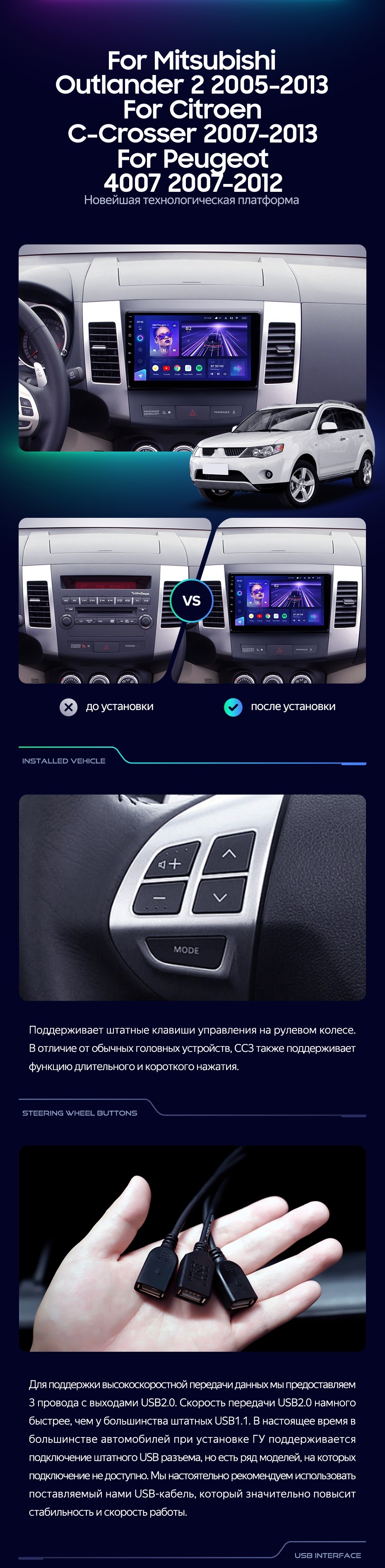 Штатная магнитола Teyes CC3 2K 360 6/128 Peugeot 4007 (2007-2012) Тип-A (13") - купить всего за 50 490 руб. в интернет-магазине в Иркутске Teyes.com.ru. ✓ Самый лучший выбор мультимедиа ✓ Лучшая замена штатному ГУ ✓ Тел. +7 (800) 775-31-74