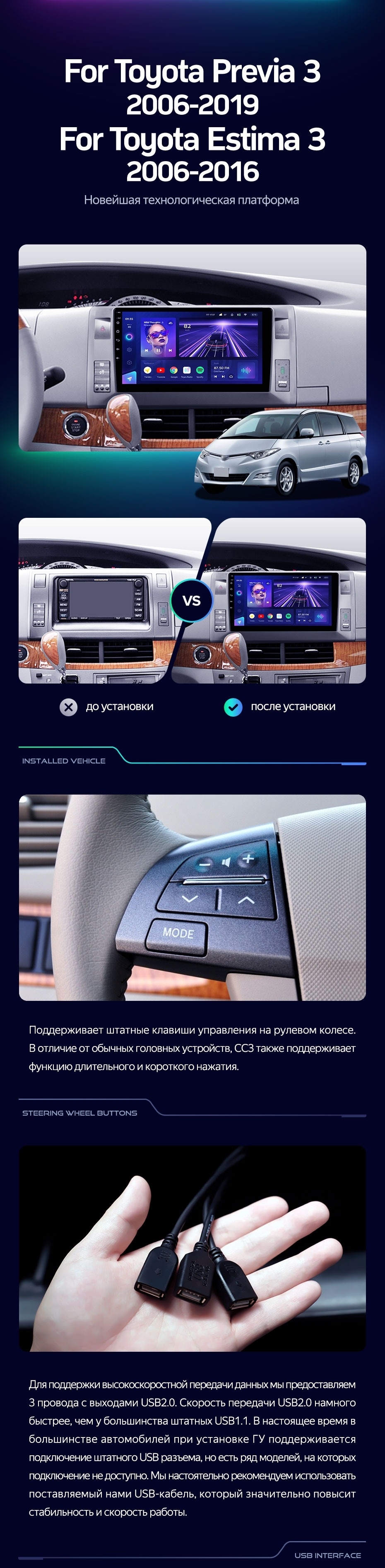 Штатная магнитола Teyes CC3 2K 360 6/128 Toyota Previa, Estima AHR20 XR50 (2006-2019) - купить всего за 55 800 руб. в интернет-магазине в Иркутске Teyes.com.ru. ✓ Самый лучший выбор мультимедиа ✓ Лучшая замена штатному ГУ ✓ Тел. +7 (800) 775-31-74