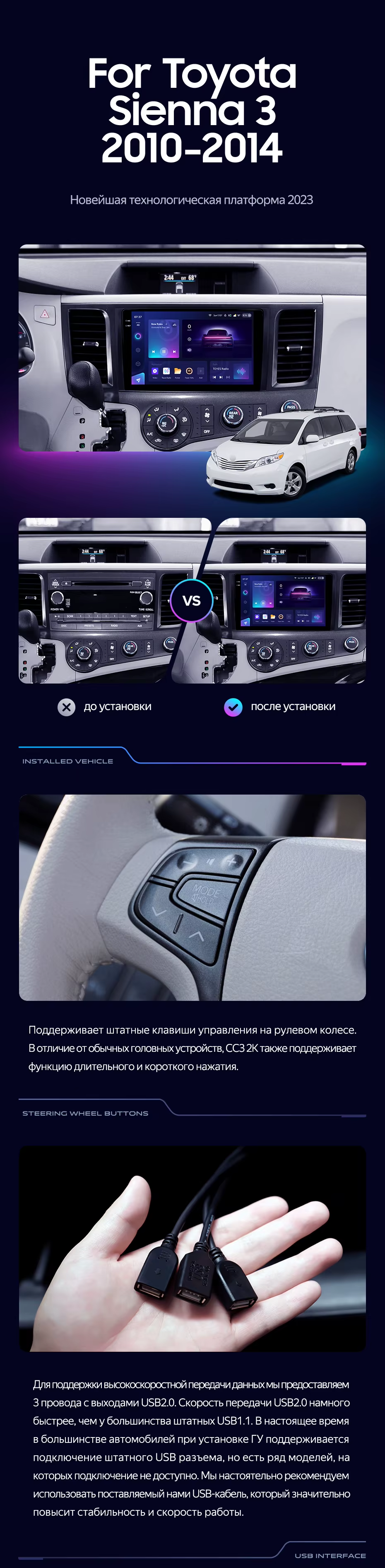 Штатная магнитола Teyes CC3 2K 360 6/128 Toyota Sienna 3 XL30 (2010-2014) - купить всего за 58 100 руб. в интернет-магазине в Иркутске Teyes.com.ru. ✓ Самый лучший выбор мультимедиа ✓ Лучшая замена штатному ГУ ✓ Тел. +7 (800) 775-31-74