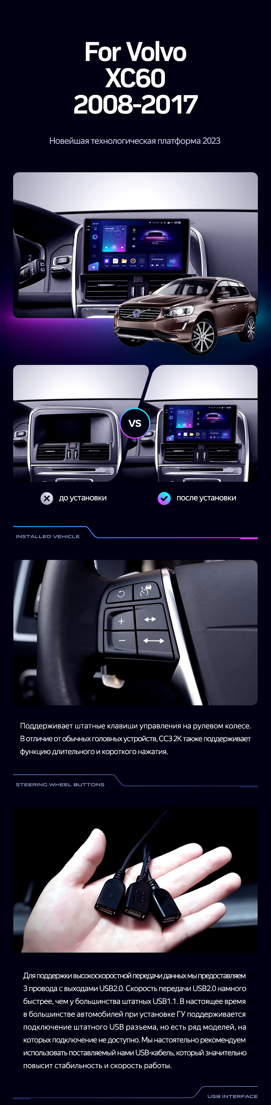 Штатная магнитола Teyes CC3 2K 360 6/128 Volvo XC60 I 1 (2013-2017) Тип-B - купить всего за 58 400 руб. в интернет-магазине в Иркутске Teyes.com.ru. ✓ Самый лучший выбор мультимедиа ✓ Лучшая замена штатному ГУ ✓ Тел. +7 (800) 775-31-74