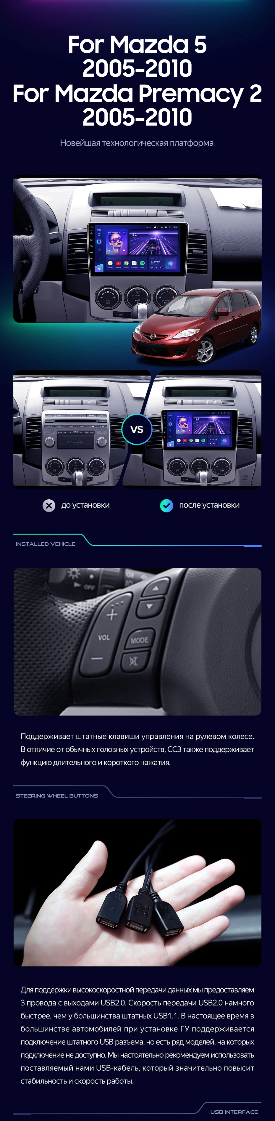 Штатная магнитола Teyes CC3 2K 4/32 Mazda Premacy 2 (2005-2010) (13") - купить всего за 41 900 руб. в интернет-магазине в Иркутске Teyes.com.ru. ✓ Самый лучший выбор мультимедиа ✓ Лучшая замена штатному ГУ ✓ Тел. +7 (800) 775-31-74