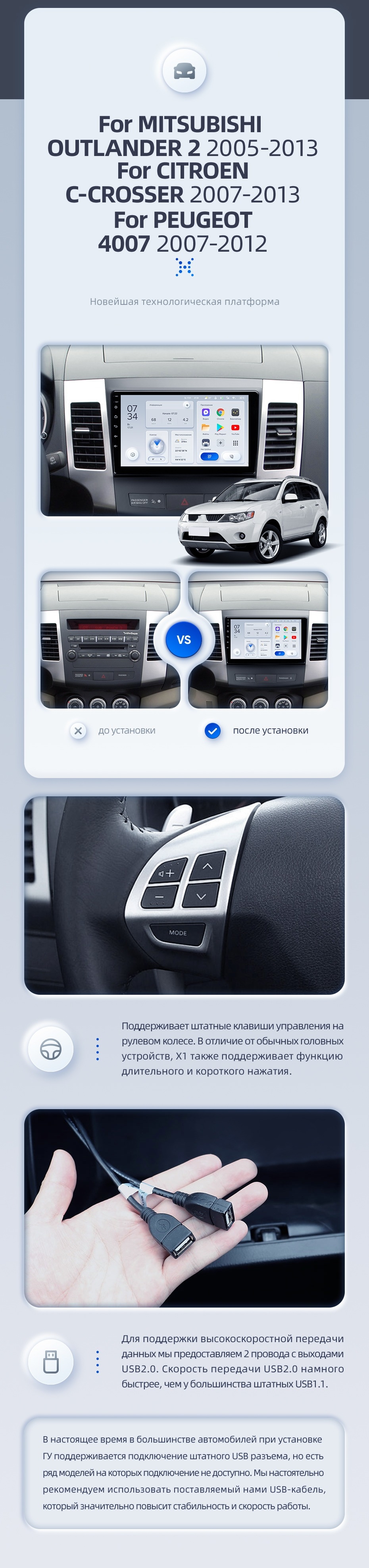 Штатная магнитола Teyes CC3 2K 4/32 Mitsubishi Outlander 2 (2005-2011) Тип-B (11") - купить всего за 41 540 руб. в интернет-магазине в Иркутске Teyes.com.ru. ✓ Самый лучший выбор мультимедиа ✓ Лучшая замена штатному ГУ ✓ Тел. +7 (800) 775-31-74
