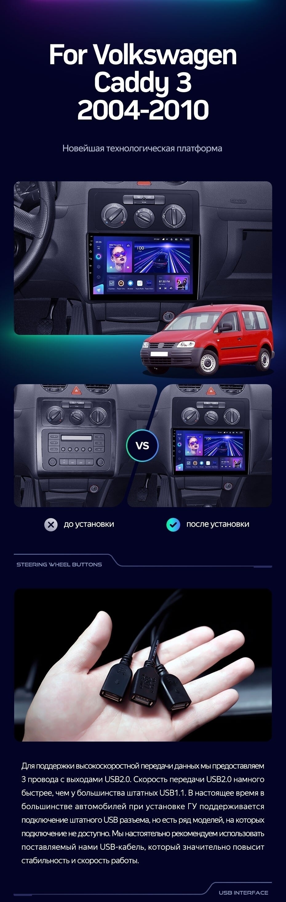Штатная магнитола Teyes CC3 2K 4/32 Volkswagen Caddy 2K (2004-2010) (13") - купить всего за 42 300 руб. в интернет-магазине в Иркутске Teyes.com.ru. ✓ Самый лучший выбор мультимедиа ✓ Лучшая замена штатному ГУ ✓ Тел. +7 (800) 775-31-74