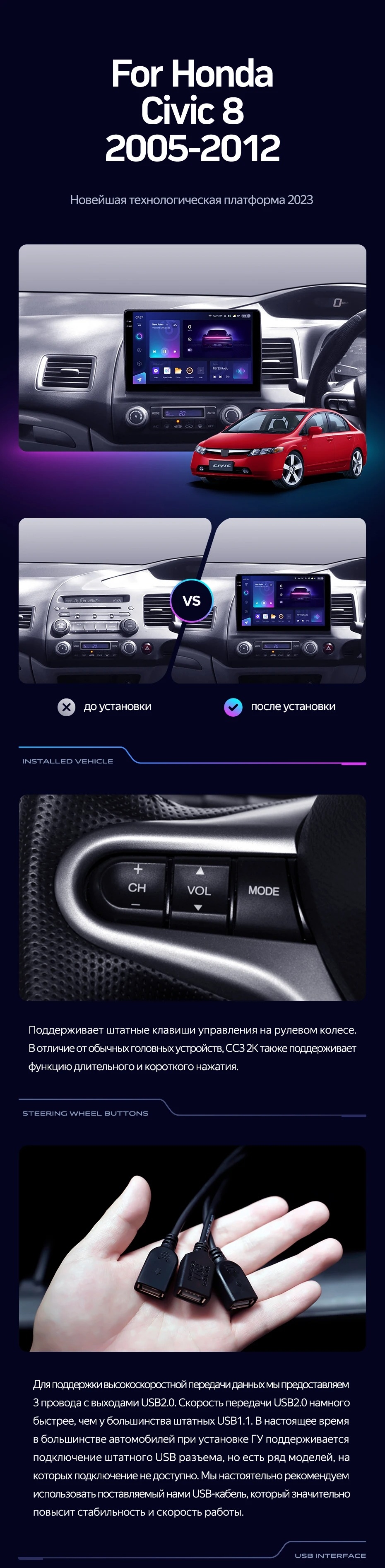 Штатная магнитола Teyes CC3 2K 4/64 Honda Civic 8 FK FN FD (2005-2012) Правый руль - купить всего за 47 800 руб. в интернет-магазине в Иркутске Teyes.com.ru. ✓ Самый лучший выбор мультимедиа ✓ Лучшая замена штатному ГУ ✓ Тел. +7 (800) 775-31-74