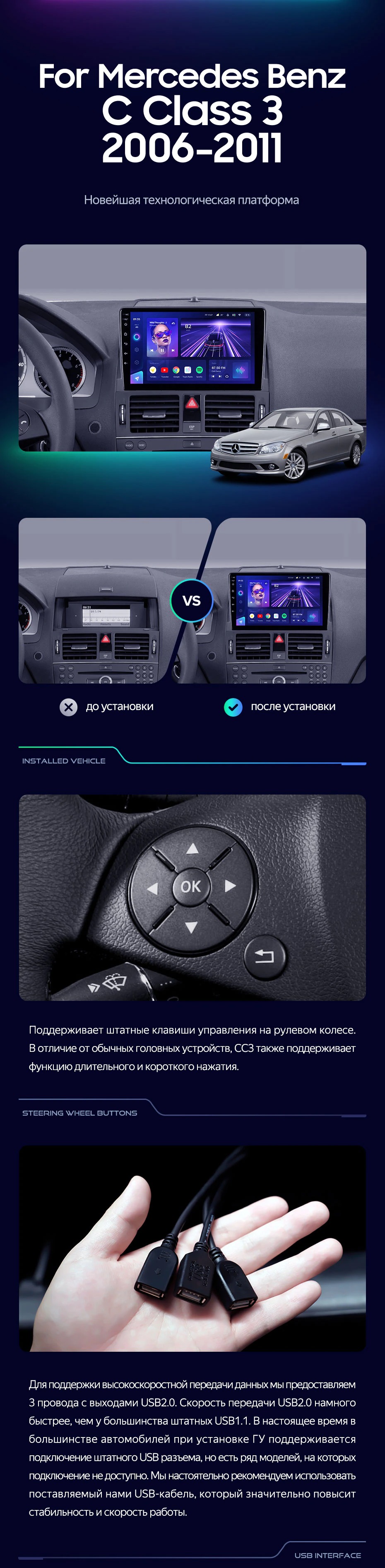 Штатная магнитола Teyes CC3 2K 4/64 Mercedes-Benz C-Class 3 W204 S204 (2006-2011) - купить всего за 46 400 руб. в интернет-магазине в Иркутске Teyes.com.ru. ✓ Самый лучший выбор мультимедиа ✓ Лучшая замена штатному ГУ ✓ Тел. +7 (800) 775-31-74