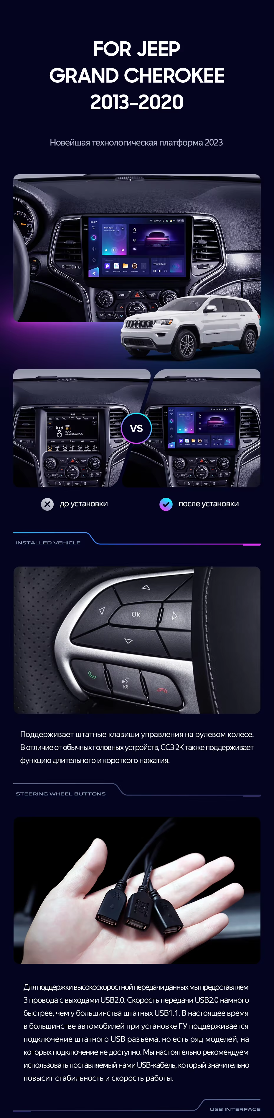 Штатная магнитола Teyes CC3 2K 6/128 Jeep Grand Cherokee WK2 (2013-2020) F1 (13") - купить всего за 48 240 руб. в интернет-магазине в Иркутске Teyes.com.ru. ✓ Самый лучший выбор мультимедиа ✓ Лучшая замена штатному ГУ ✓ Тел. +7 (800) 775-31-74