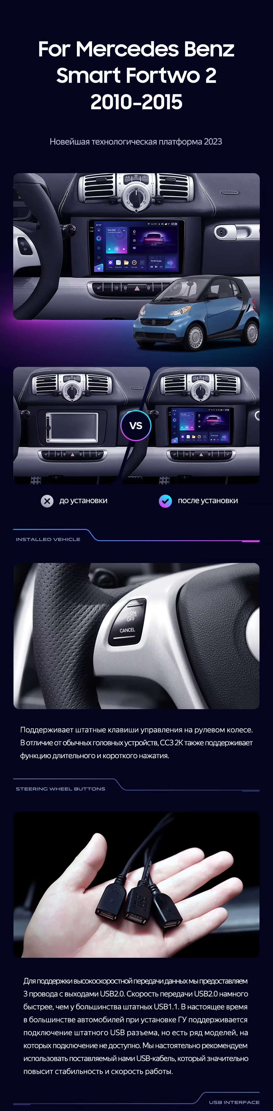 Штатная магнитола Teyes CC3 2K 6/128 Mercedes-Benz Smart Fortwo 2 (2010-2015) F1 - купить всего за 45 100 руб. в интернет-магазине в Иркутске Teyes.com.ru. ✓ Самый лучший выбор мультимедиа ✓ Лучшая замена штатному ГУ ✓ Тел. +7 (800) 775-31-74