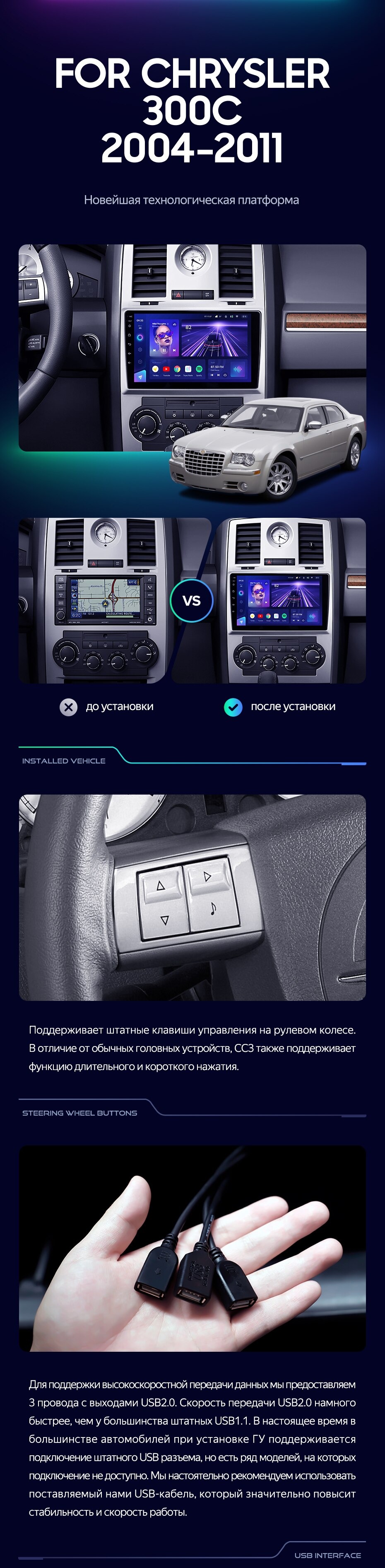Штатная магнитола Teyes CC3 4/32 Chrysler 300C 1 (2004-2011) - купить всего за 33 630 руб. в интернет-магазине в Иркутске Teyes.com.ru. ✓ Самый лучший выбор мультимедиа ✓ Лучшая замена штатному ГУ ✓ Тел. +7 (800) 775-31-74