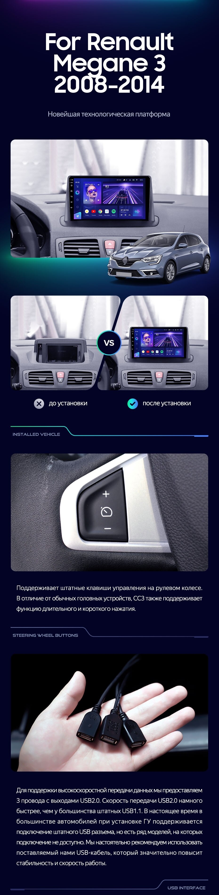 Штатная магнитола Teyes CC3 4/32 Renault Megane 3 (2008-2014) - купить всего за 34 030 руб. в интернет-магазине в Иркутске Teyes.com.ru. ✓ Самый лучший выбор мультимедиа ✓ Лучшая замена штатному ГУ ✓ Тел. +7 (800) 775-31-74