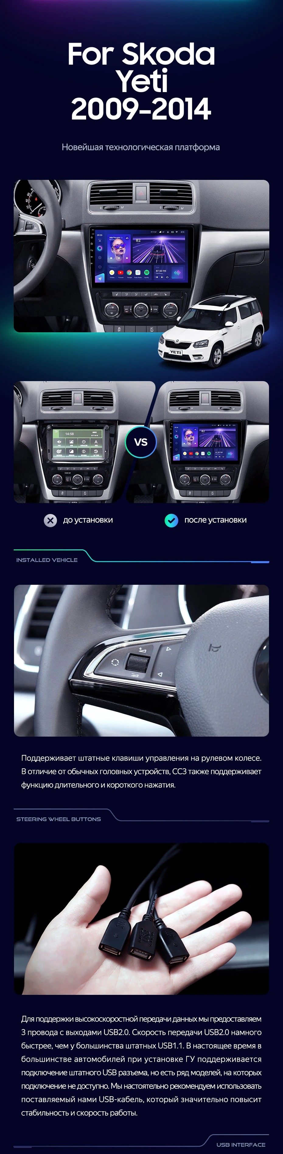 Штатная магнитола Teyes CC3 4/32 Skoda Yeti 5L (2009-2014) - купить всего за 33 300 руб. в интернет-магазине в Иркутске Teyes.com.ru. ✓ Самый лучший выбор мультимедиа ✓ Лучшая замена штатному ГУ ✓ Тел. +7 (800) 775-31-74