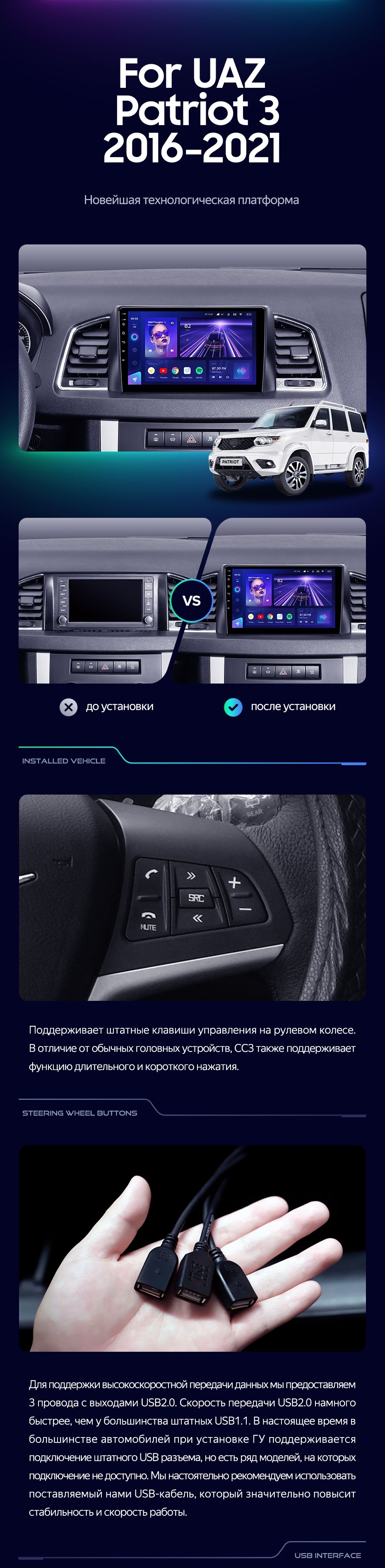 Штатная магнитола Teyes CC3 4/32 UAZ Patriot 3 (2016-2021) F1 - купить всего за 32 270 руб. в интернет-магазине в Иркутске Teyes.com.ru. ✓ Самый лучший выбор мультимедиа ✓ Лучшая замена штатному ГУ ✓ Тел. +7 (800) 775-31-74