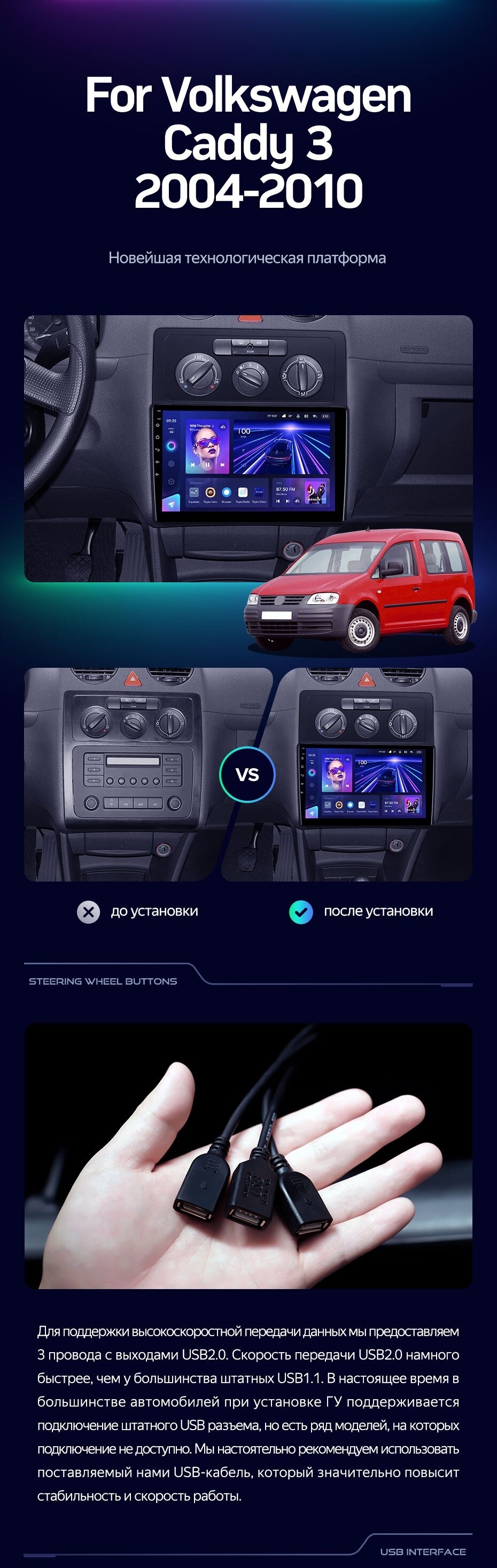 Штатная магнитола Teyes CC3 4/32 Volkswagen Caddy 2K (2004-2010) - купить всего за 34 300 руб. в интернет-магазине в Иркутске Teyes.com.ru. ✓ Самый лучший выбор мультимедиа ✓ Лучшая замена штатному ГУ ✓ Тел. +7 (800) 775-31-74