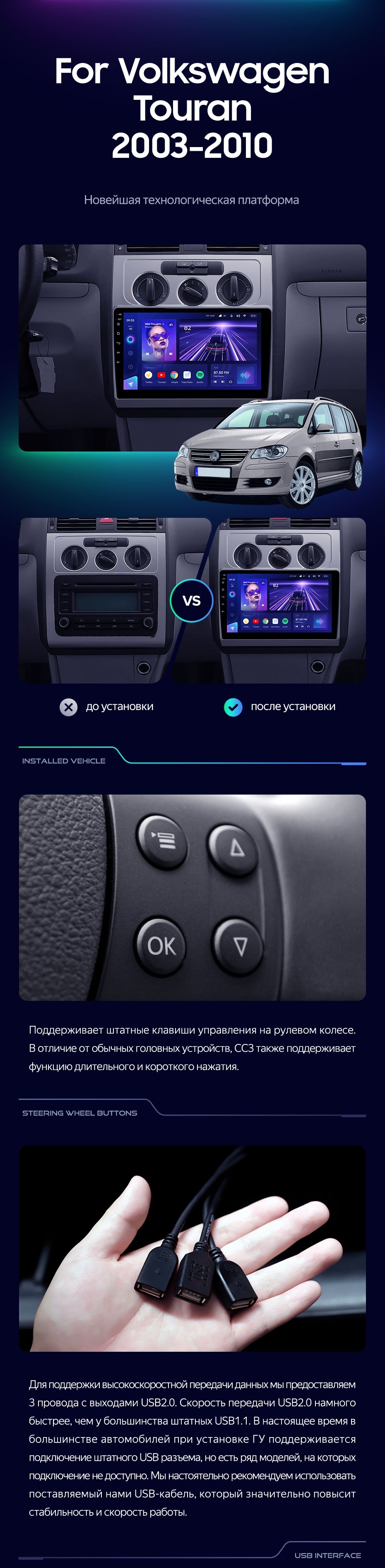Штатная магнитола Teyes CC3 4/32 Volkswagen Touran 1 (2003-2010) F1 - купить всего за 33 100 руб. в интернет-магазине в Иркутске Teyes.com.ru. ✓ Самый лучший выбор мультимедиа ✓ Лучшая замена штатному ГУ ✓ Тел. +7 (800) 775-31-74