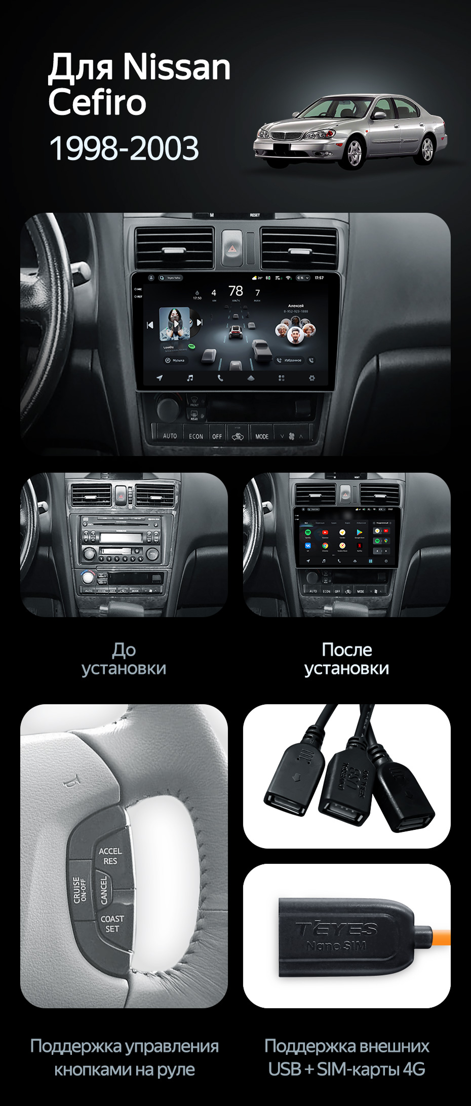 Штатная магнитола Teyes CC3 4/32 Nissan Cefiro 3 A33 (1998-2003) F2 - купить всего за 32 630 руб. в интернет-магазине в Иркутске Teyes.com.ru. ✓ Самый лучший выбор мультимедиа ✓ Лучшая замена штатному ГУ ✓ Тел. +7 (800) 775-31-74