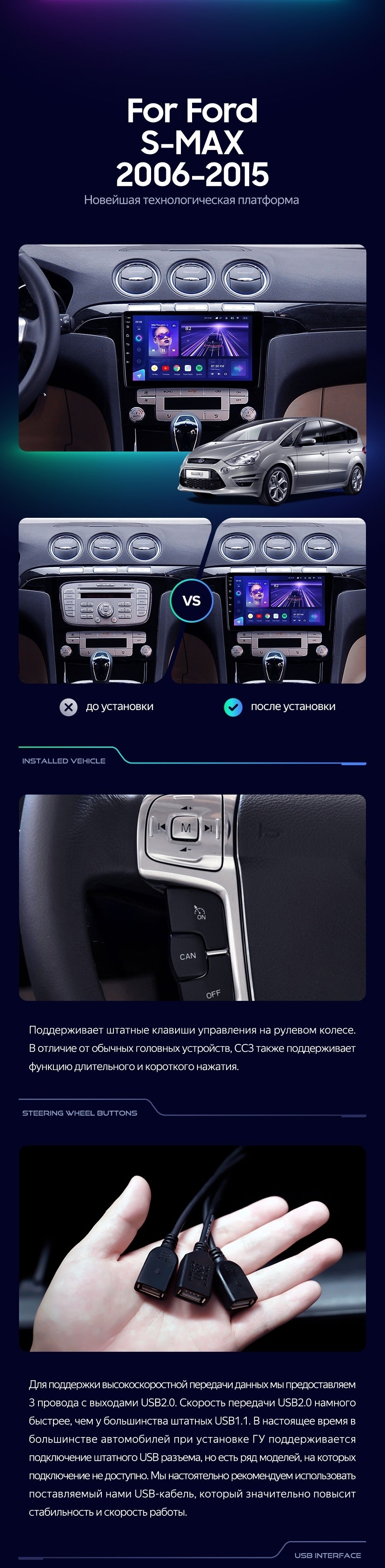 Штатная магнитола Teyes CC3L 4/32 Ford S-MAX (2006-2015) F2 - купить всего за 29 200 руб. в интернет-магазине в Иркутске Teyes.com.ru. ✓ Самый лучший выбор мультимедиа ✓ Лучшая замена штатному ГУ ✓ Тел. +7 (800) 775-31-74