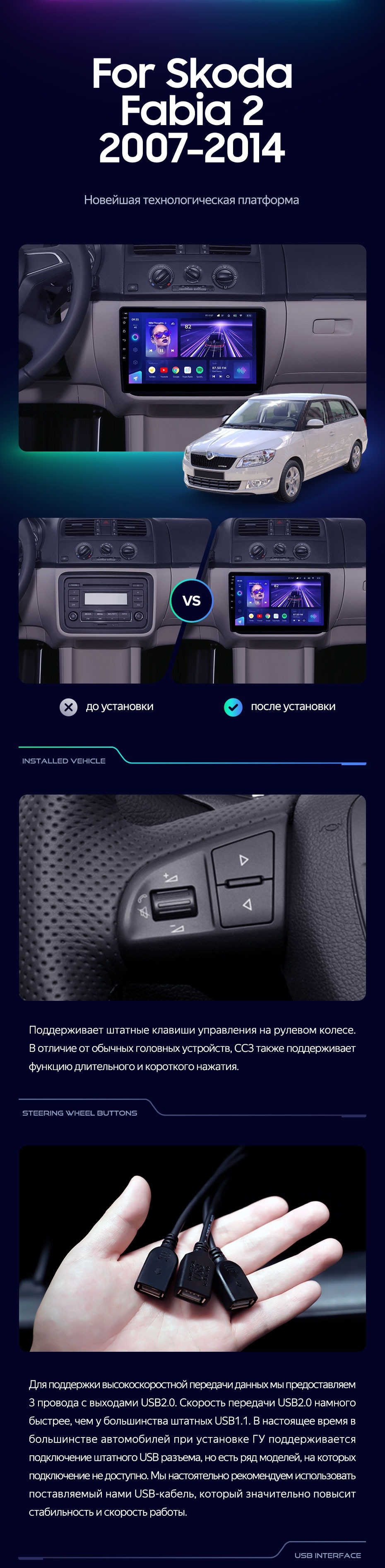 Штатная магнитола Teyes CC3L 4/32 Skoda Fabia 2 (2007-2014) - купить всего за 28 660 руб. в интернет-магазине в Иркутске Teyes.com.ru. ✓ Самый лучший выбор мультимедиа ✓ Лучшая замена штатному ГУ ✓ Тел. +7 (800) 775-31-74