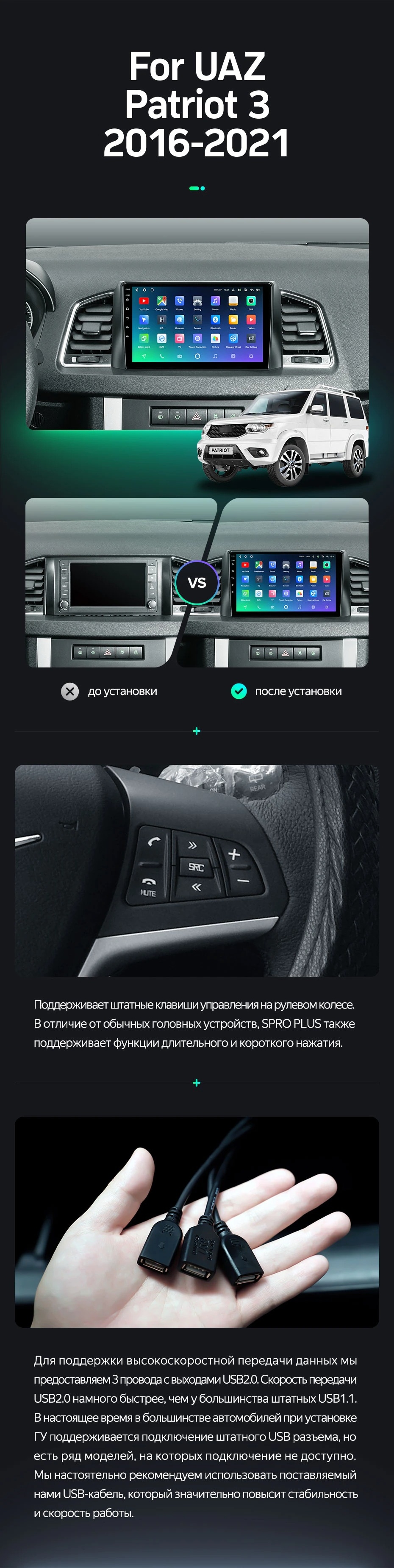 Штатная магнитола Teyes CC3L 4/32 UAZ Patriot 3 (2016-2021) F2 - купить всего за 28 380 руб. в интернет-магазине в Иркутске Teyes.com.ru. ✓ Самый лучший выбор мультимедиа ✓ Лучшая замена штатному ГУ ✓ Тел. +7 (800) 775-31-74