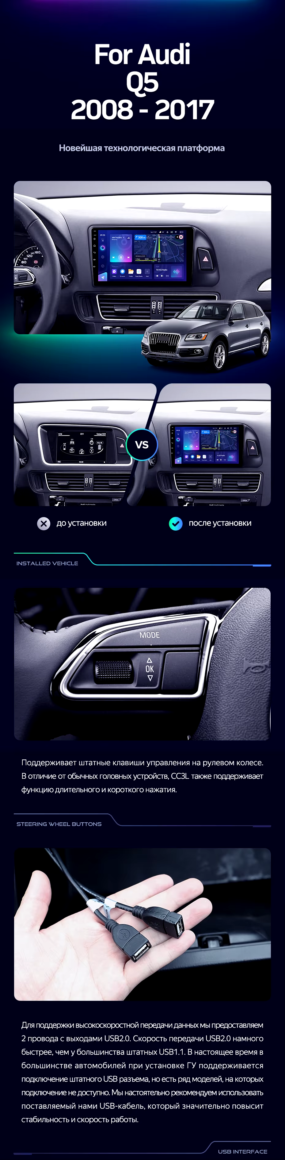 Штатная магнитола Teyes CC3L 4/64 Audi Q5 8R (2008-2017) Тип-A - купить всего за 33 750 руб. в интернет-магазине в Иркутске Teyes.com.ru. ✓ Самый лучший выбор мультимедиа ✓ Лучшая замена штатному ГУ ✓ Тел. +7 (800) 775-31-74