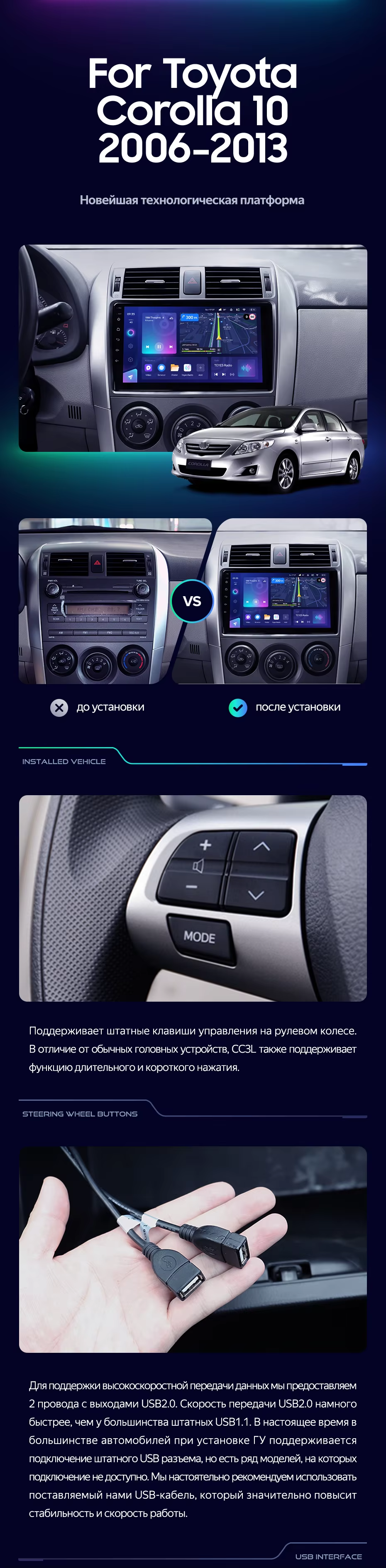 Штатная магнитола Teyes CC3L 4/64 Toyota Corolla 10 E140 E150 (2006-2013) Тип-B - купить всего за 30 020 руб. в интернет-магазине в Иркутске Teyes.com.ru. ✓ Самый лучший выбор мультимедиа ✓ Лучшая замена штатному ГУ ✓ Тел. +7 (800) 775-31-74