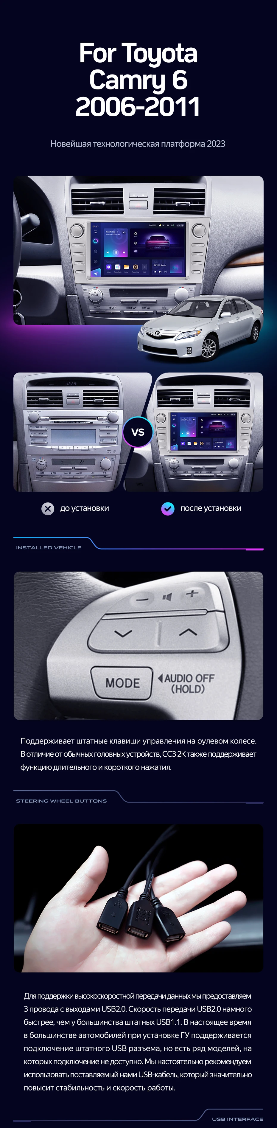 Штатная магнитола Teyes CC3L WiFi 2/32 Toyota Camry 6 XV 40 (2006-2011) F4 с кнопками - купить всего за 17 300 руб. в интернет-магазине в Иркутске Teyes.com.ru. ✓ Самый лучший выбор мультимедиа ✓ Лучшая замена штатному ГУ ✓ Тел. +7 (800) 775-31-74