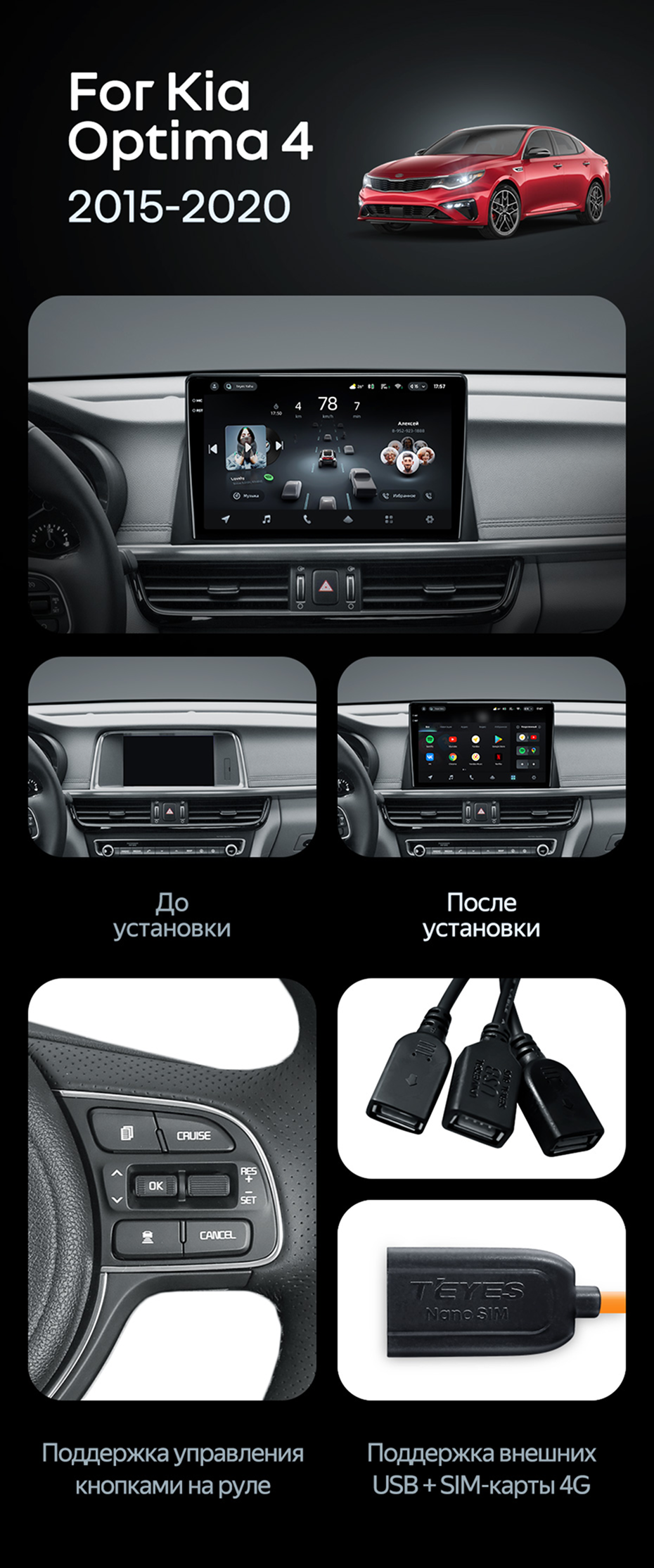 Штатная магнитола Teyes CC4 6/64 Kia Optima 4 JF (2015-2020) Тип-B - купить всего за 49 040 руб. в интернет-магазине в Иркутске Teyes.com.ru. ✓ Самый лучший выбор мультимедиа ✓ Лучшая замена штатному ГУ ✓ Тел. +7 (800) 775-31-74