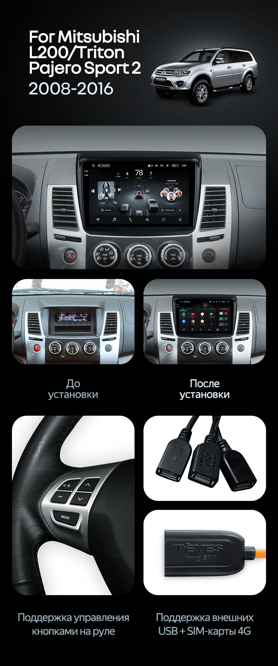 Штатная магнитола Teyes CC4 6/64 Mitsubishi L200 (2008-2016) - купить всего за 47 540 руб. в интернет-магазине в Иркутске Teyes.com.ru. ✓ Самый лучший выбор мультимедиа ✓ Лучшая замена штатному ГУ ✓ Тел. +7 (800) 775-31-74