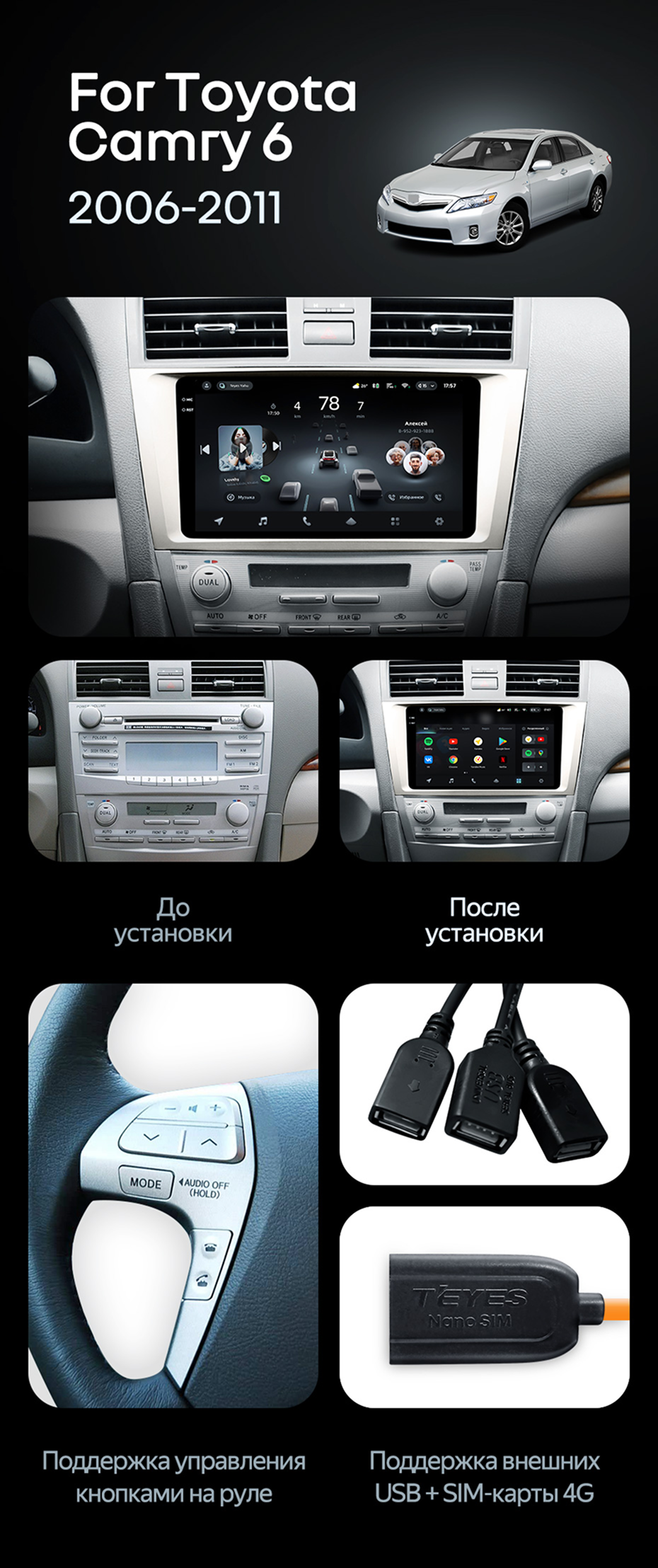 Штатная магнитола Teyes CC4 6/64 Toyota Camry 6 XV 40 (2006-2011) F1 - купить всего за 47 020 руб. в интернет-магазине в Иркутске Teyes.com.ru. ✓ Самый лучший выбор мультимедиа ✓ Лучшая замена штатному ГУ ✓ Тел. +7 (800) 775-31-74