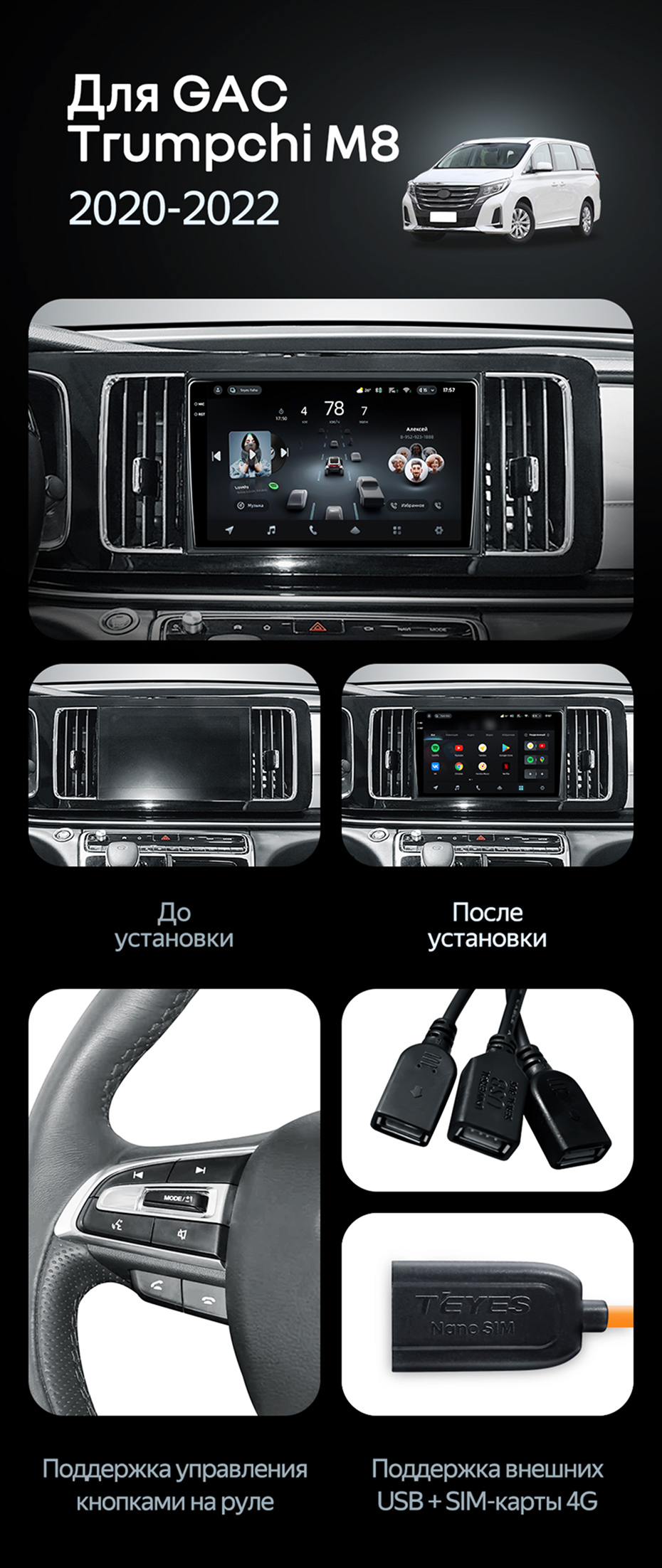 Штатная магнитола Teyes CC4 Pro 12/256 GAC Trumpchi M8 (2020-2022) - купить всего за 67 750 руб. в интернет-магазине в Иркутске Teyes.com.ru. ✓ Самый лучший выбор мультимедиа ✓ Лучшая замена штатному ГУ ✓ Тел. +7 (800) 775-31-74