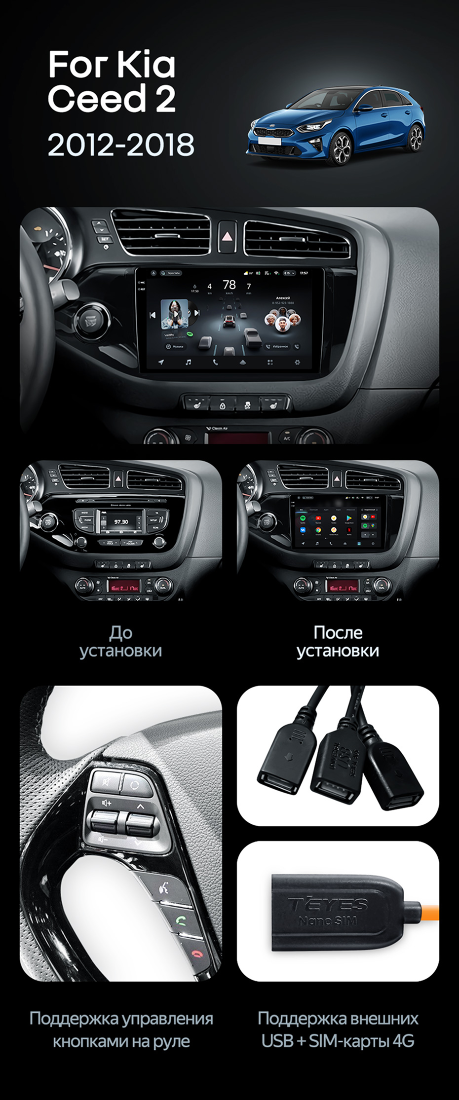 Штатная магнитола Teyes CC4 Pro 12/256 Kia Ceed 2 JD (2012-2018) - купить всего за 66 580 руб. в интернет-магазине в Иркутске Teyes.com.ru. ✓ Самый лучший выбор мультимедиа ✓ Лучшая замена штатному ГУ ✓ Тел. +7 (800) 775-31-74