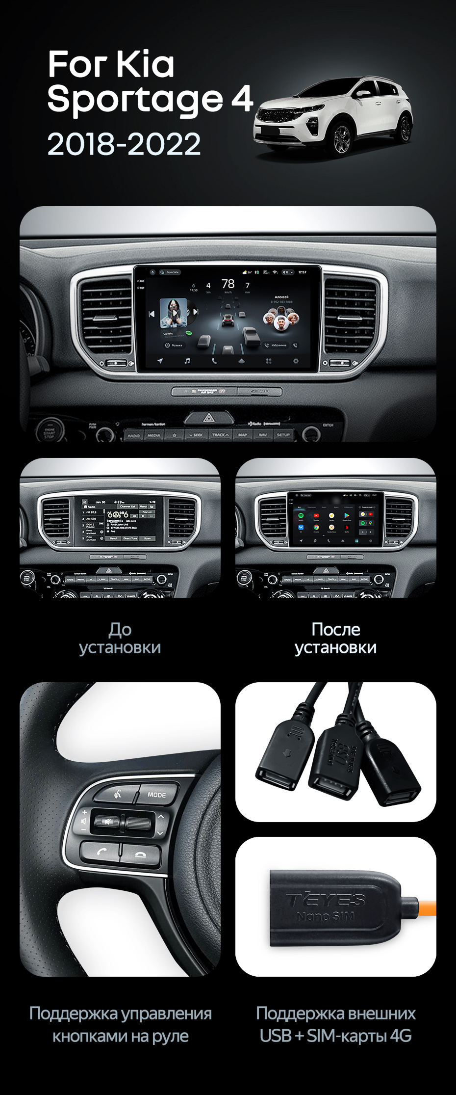 Штатная магнитола Teyes CC4 Pro 12/256 Kia Sportage 4 QL (2018-2022) Тип-A - купить всего за 65 840 руб. в интернет-магазине в Иркутске Teyes.com.ru. ✓ Самый лучший выбор мультимедиа ✓ Лучшая замена штатному ГУ ✓ Тел. +7 (800) 775-31-74