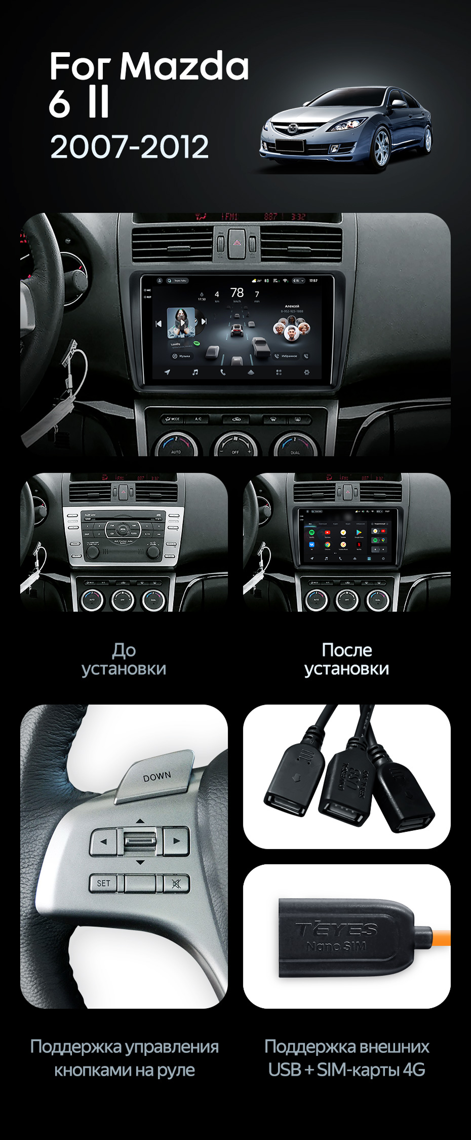 Штатная магнитола Teyes CC4 Pro 12/256 Mazda 6 2 GH (2007-2012) - купить всего за 66 240 руб. в интернет-магазине в Иркутске Teyes.com.ru. ✓ Самый лучший выбор мультимедиа ✓ Лучшая замена штатному ГУ ✓ Тел. +7 (800) 775-31-74