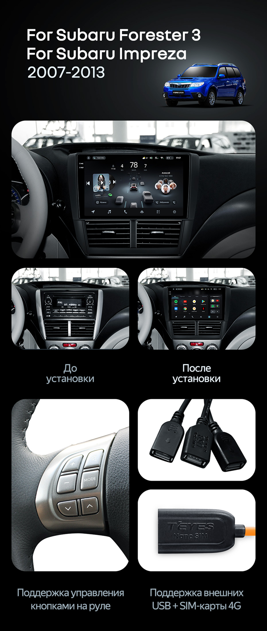 Штатная магнитола Teyes CC4 Pro 12/256 Subaru Forester 3 SH (2007-2013) - купить всего за 66 060 руб. в интернет-магазине в Иркутске Teyes.com.ru. ✓ Самый лучший выбор мультимедиа ✓ Лучшая замена штатному ГУ ✓ Тел. +7 (800) 775-31-74