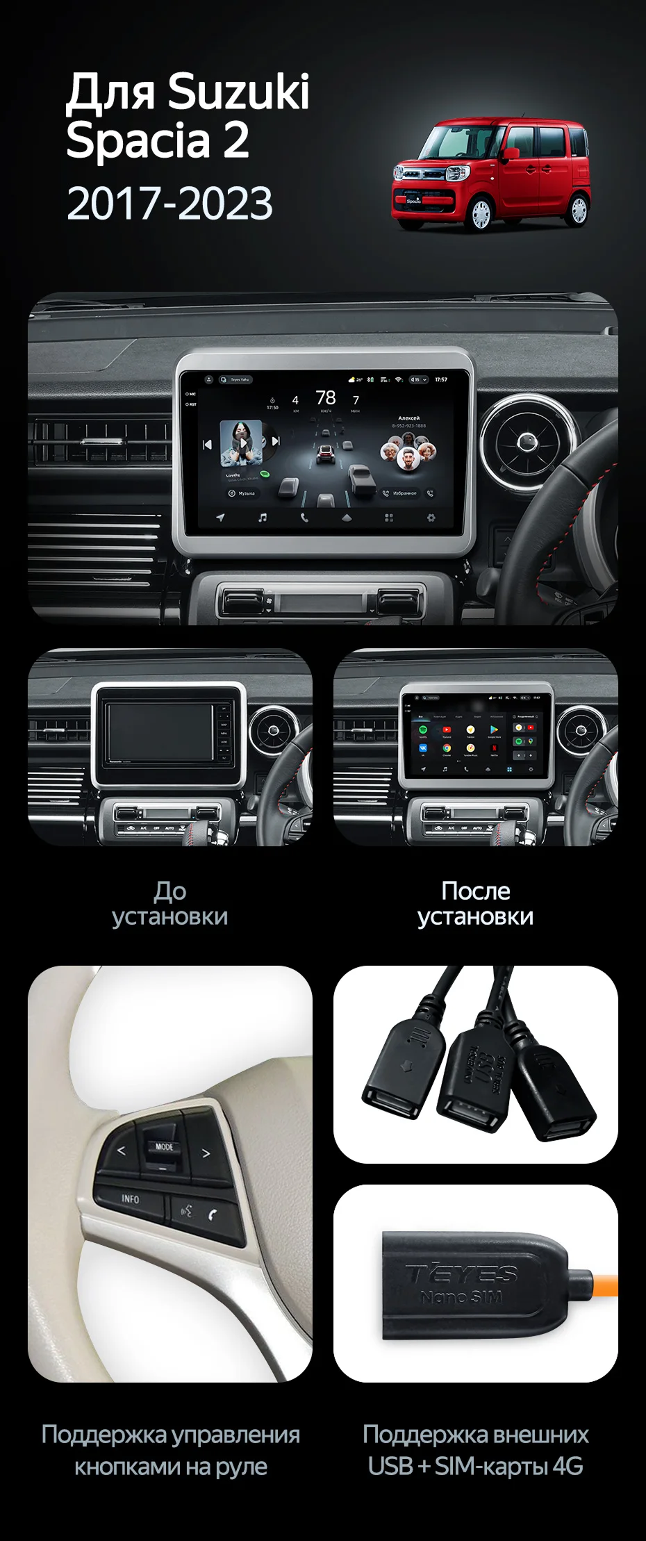Штатная магнитола Teyes CC4 Pro 12/256 Suzuki Spacia 2 (2017-2023) - купить всего за 66 360 руб. в интернет-магазине в Иркутске Teyes.com.ru. ✓ Самый лучший выбор мультимедиа ✓ Лучшая замена штатному ГУ ✓ Тел. +7 (800) 775-31-74