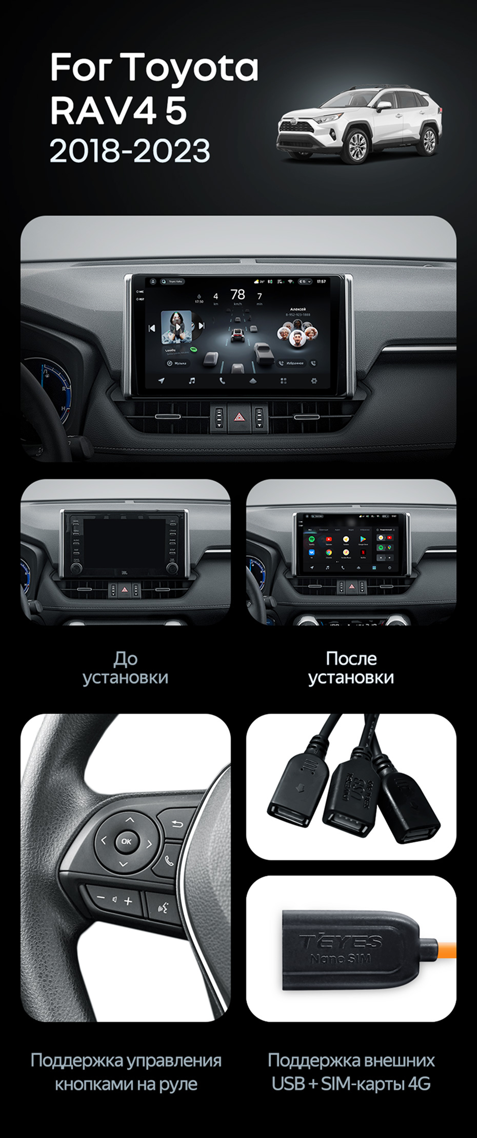 Штатная магнитола Teyes CC4 Pro 12/256 Toyota RAV4 XA50 (2018-2023) F1 - купить всего за 66 930 руб. в интернет-магазине в Иркутске Teyes.com.ru. ✓ Самый лучший выбор мультимедиа ✓ Лучшая замена штатному ГУ ✓ Тел. +7 (800) 775-31-74