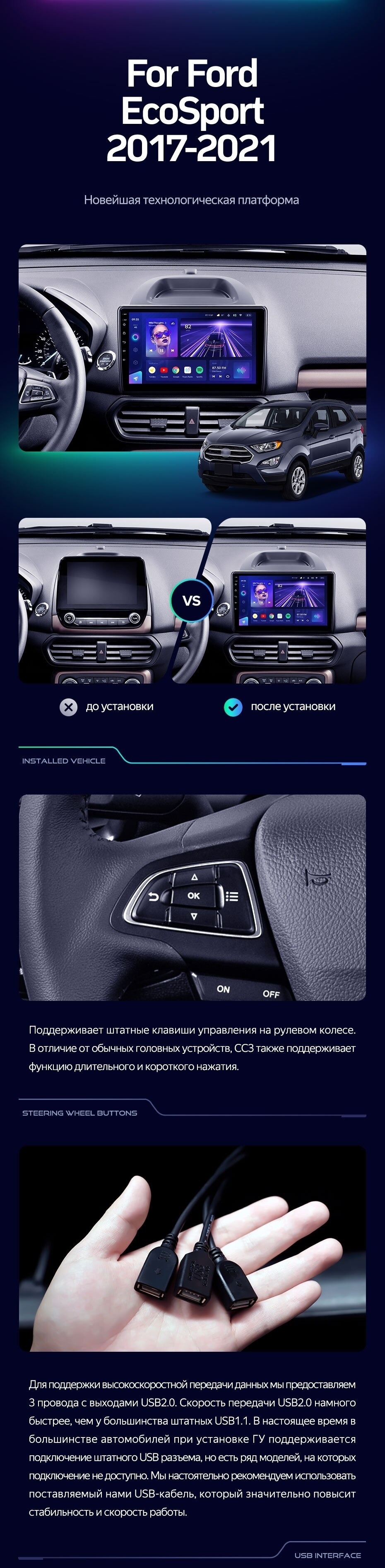 Штатная магнитола Teyes CC4 Pro 360 12/256 Ford EcoSport (2017-2021) (11") - купить всего за 94 500 руб. в интернет-магазине в Иркутске Teyes.com.ru. ✓ Самый лучший выбор мультимедиа ✓ Лучшая замена штатному ГУ ✓ Тел. +7 (800) 775-31-74
