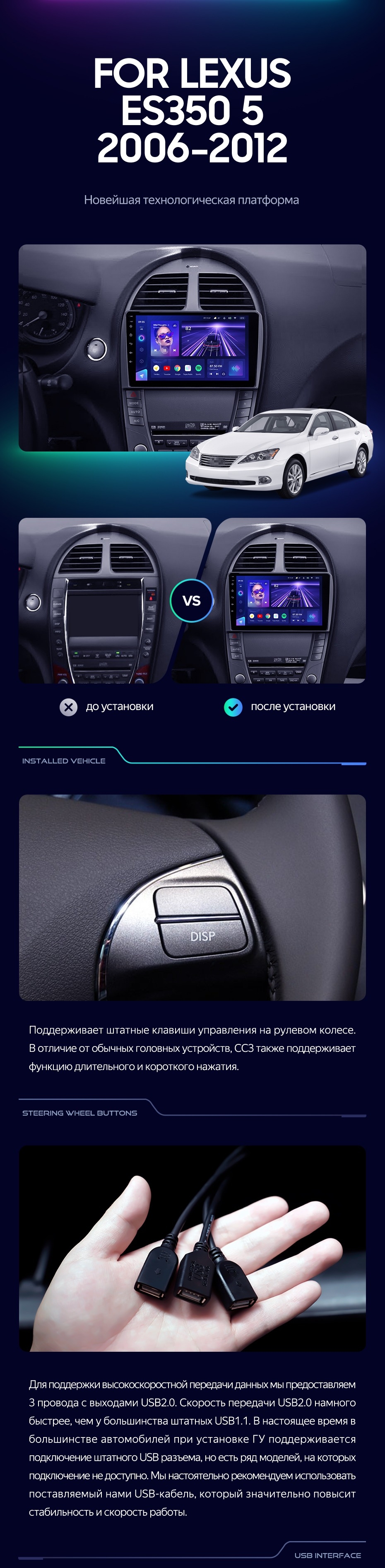 Штатная магнитола Teyes CC4 Pro 360 12/256 Lexus ES350 5 V XV40 (2006-2012) Тип-C - купить всего за 90 160 руб. в интернет-магазине в Иркутске Teyes.com.ru. ✓ Самый лучший выбор мультимедиа ✓ Лучшая замена штатному ГУ ✓ Тел. +7 (800) 775-31-74