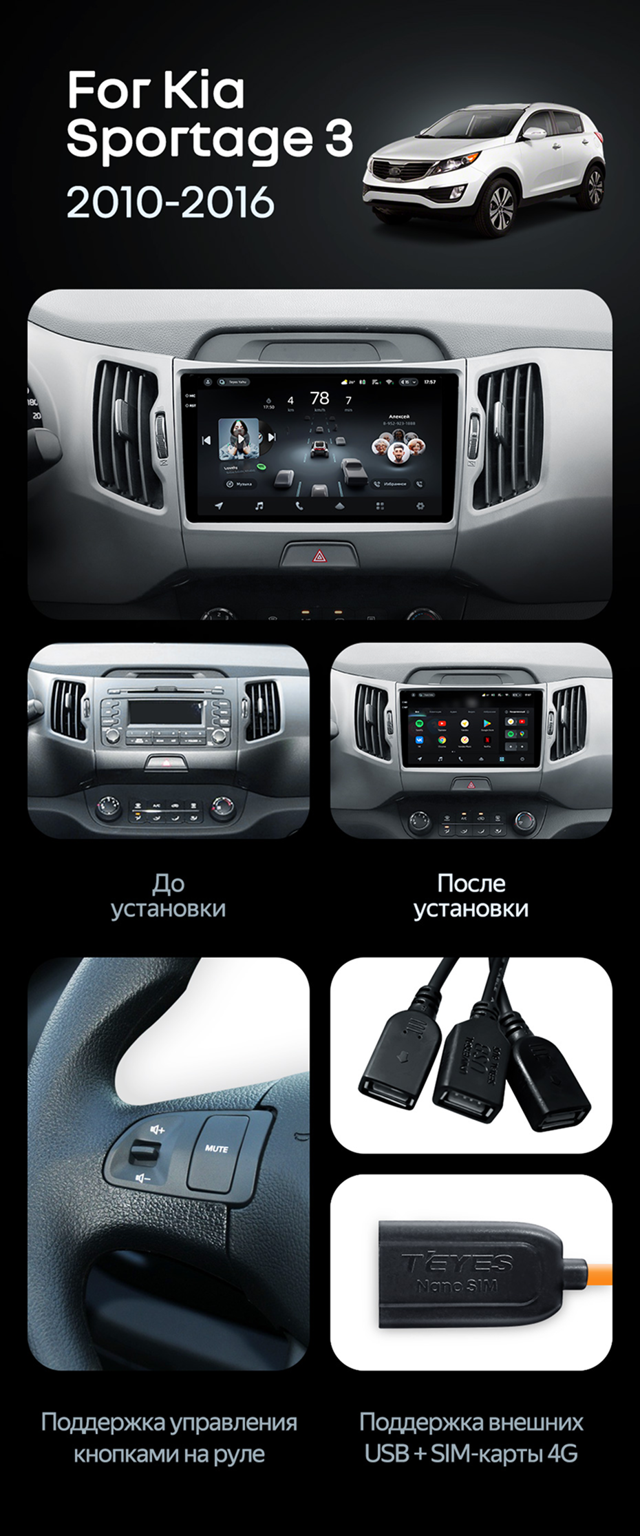 Штатная магнитола Teyes CC4 Pro 8/128 Kia Sportage 3 SL (2010-2016) Тип-B - купить всего за 60 270 руб. в интернет-магазине в Иркутске Teyes.com.ru. ✓ Самый лучший выбор мультимедиа ✓ Лучшая замена штатному ГУ ✓ Тел. +7 (800) 775-31-74
