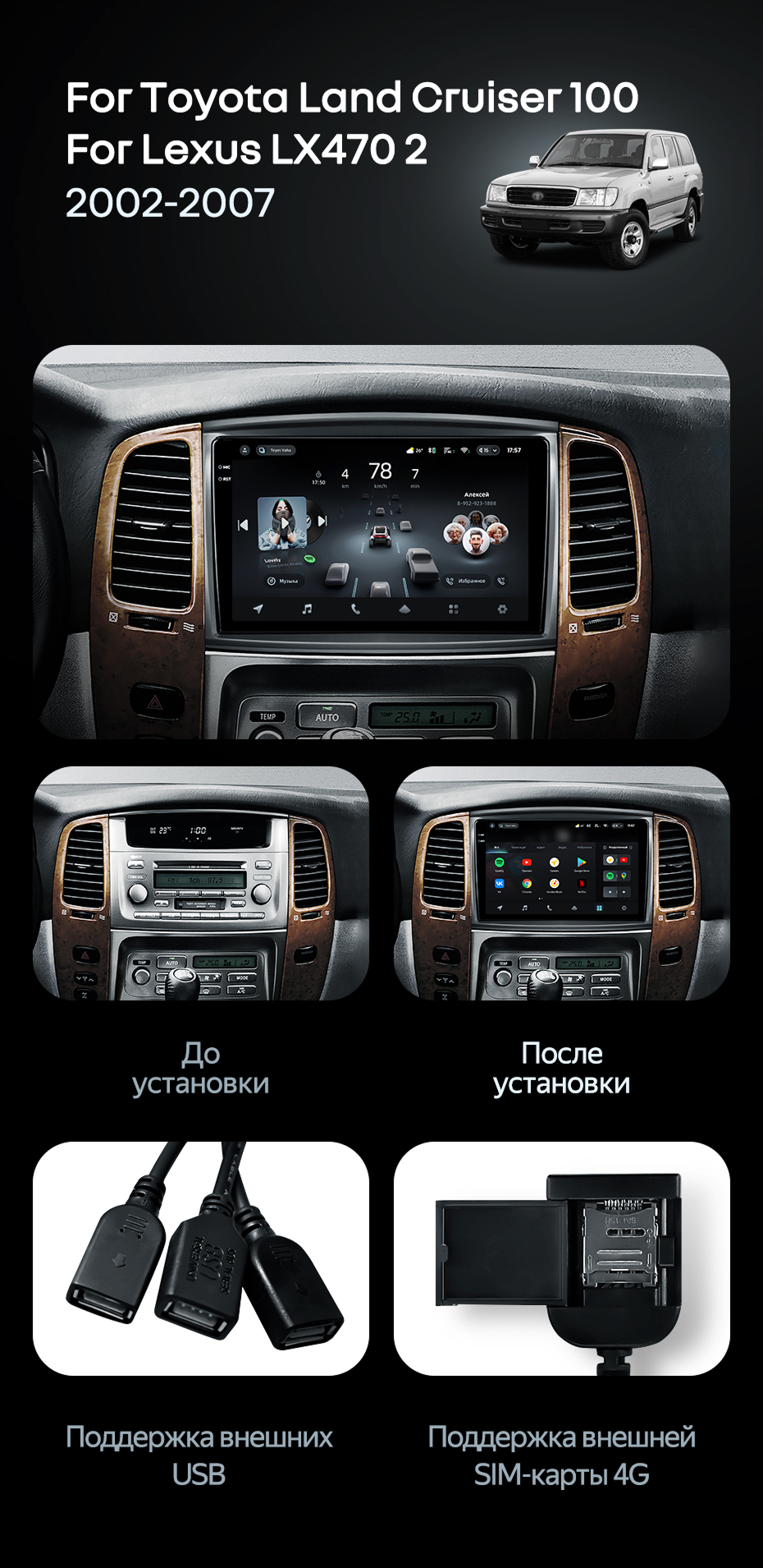 Штатная магнитола Teyes CC4 Pro 8/128 Lexus LX470 J100 2 (2002-2007) Тип-C - купить всего за 58 900 руб. в интернет-магазине в Иркутске Teyes.com.ru. ✓ Самый лучший выбор мультимедиа ✓ Лучшая замена штатному ГУ ✓ Тел. +7 (800) 775-31-74