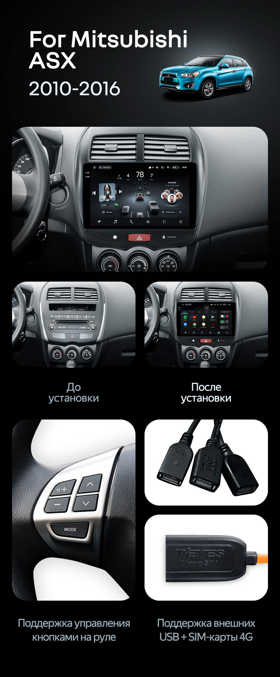 Штатная магнитола Teyes CC4 Pro 8/128 Mitsubishi ASX 1 (2010-2016) Тип-B - купить всего за 56 700 руб. в интернет-магазине в Иркутске Teyes.com.ru. ✓ Самый лучший выбор мультимедиа ✓ Лучшая замена штатному ГУ ✓ Тел. +7 (800) 775-31-74