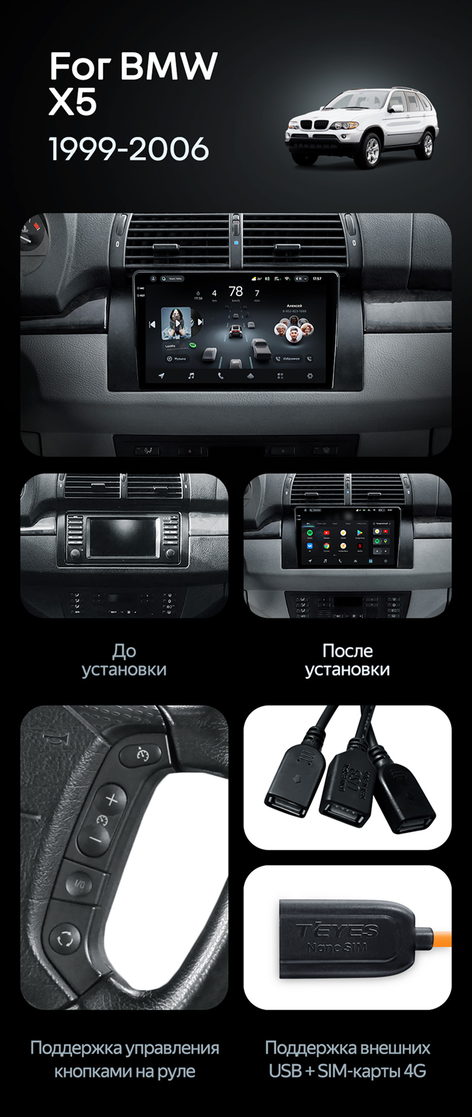Штатная магнитола Teyes CC4L 6/64 BMW X5 E39 E53 (1999-2006) - купить всего за 31 700 руб. в интернет-магазине в Иркутске Teyes.com.ru. ✓ Самый лучший выбор мультимедиа ✓ Лучшая замена штатному ГУ ✓ Тел. +7 (800) 775-31-74