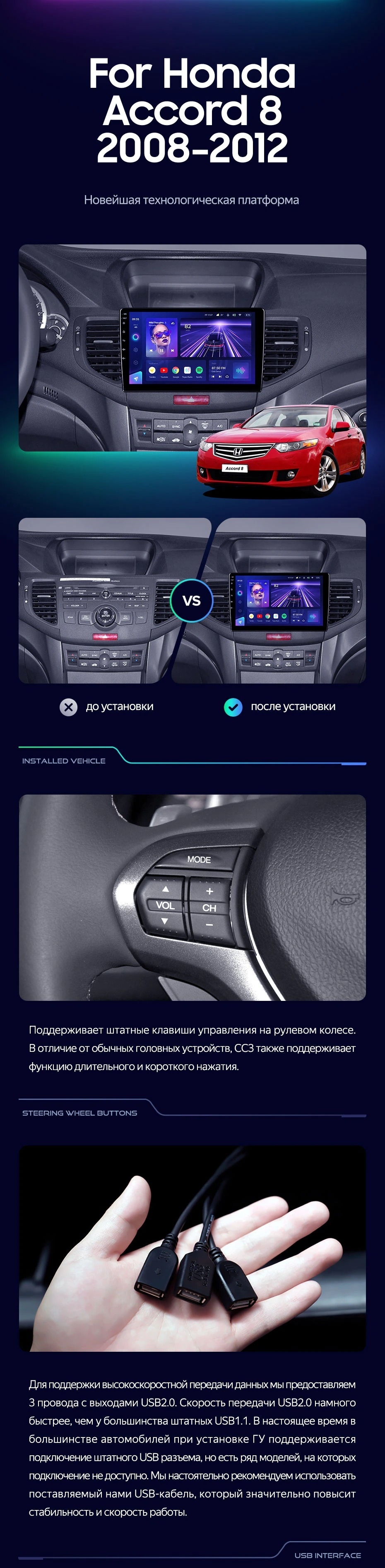 Штатная магнитола Teyes CC4L 6/64 Honda Accord 8 (2008-2012) - купить всего за 31 400 руб. в интернет-магазине в Иркутске Teyes.com.ru. ✓ Самый лучший выбор мультимедиа ✓ Лучшая замена штатному ГУ ✓ Тел. +7 (800) 775-31-74
