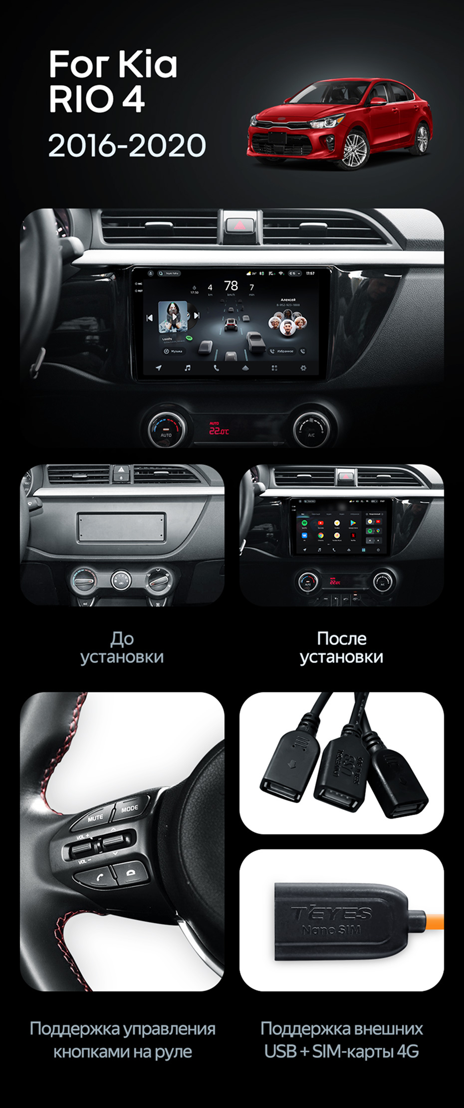 Штатная магнитола Teyes CC4L 6/64 Kia Rio 4 (2016-2020) Тип-B - купить всего за 30 460 руб. в интернет-магазине в Иркутске Teyes.com.ru. ✓ Самый лучший выбор мультимедиа ✓ Лучшая замена штатному ГУ ✓ Тел. +7 (800) 775-31-74