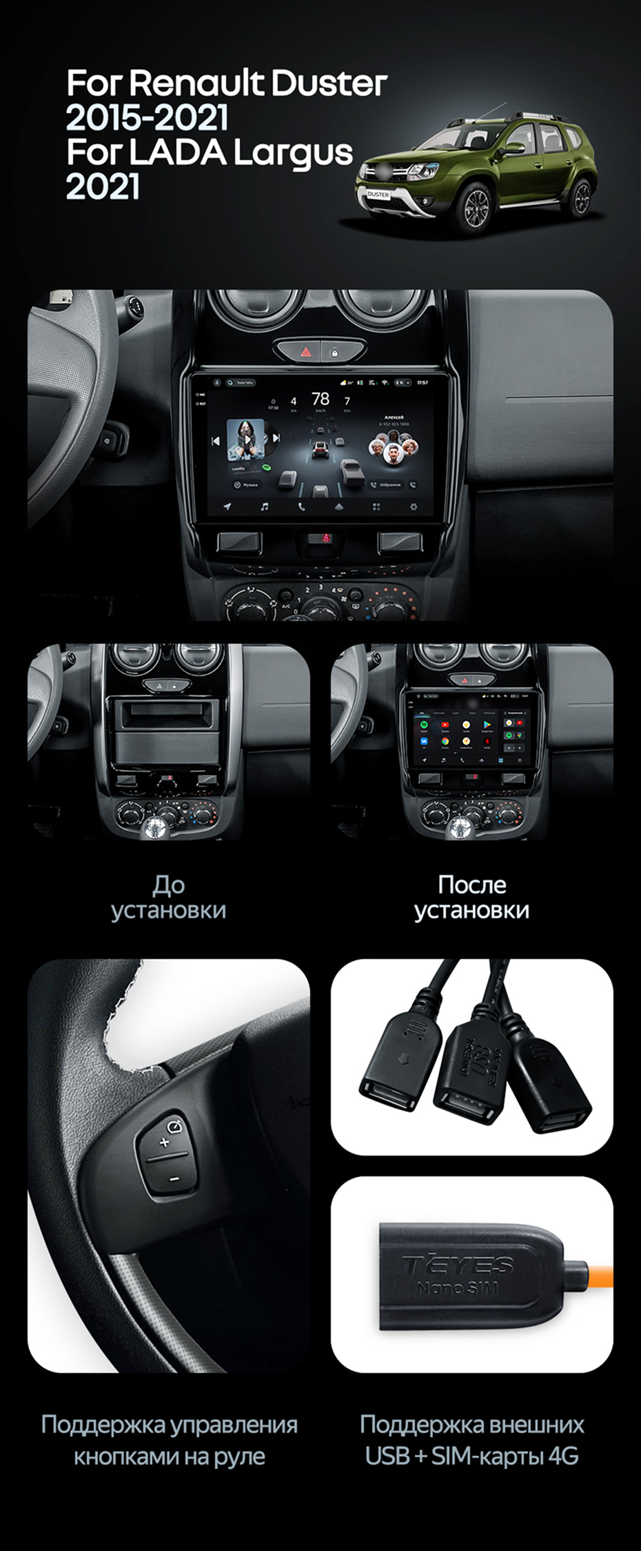 Штатная магнитола Teyes CC4L 6/64 Renault Duster (2015-2020) F2 - купить всего за 31 740 руб. в интернет-магазине в Иркутске Teyes.com.ru. ✓ Самый лучший выбор мультимедиа ✓ Лучшая замена штатному ГУ ✓ Тел. +7 (800) 775-31-74